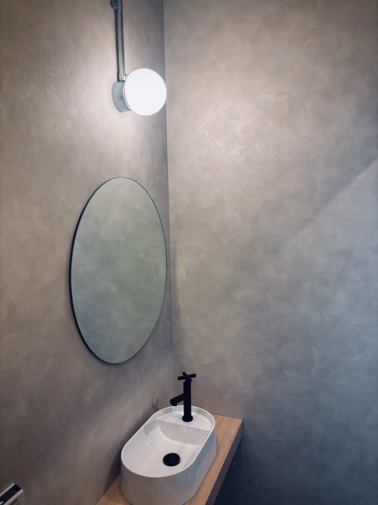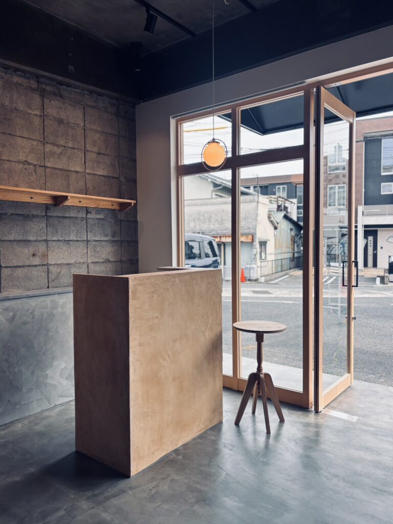 レセプションカウンターはモールテックスで仕上げ。