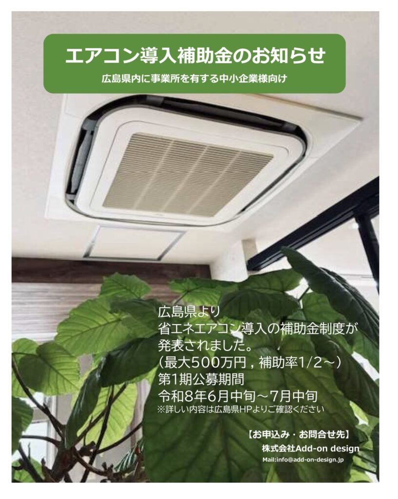 エアコン入れ替え等対象の補助金制度が広島県より発表されています。